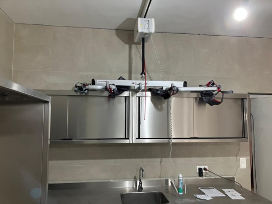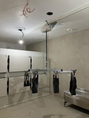 De laatste hand wordt gelegd aan een project in Antwerpen. De plafondlift is in ieder geval al gemonteerd.